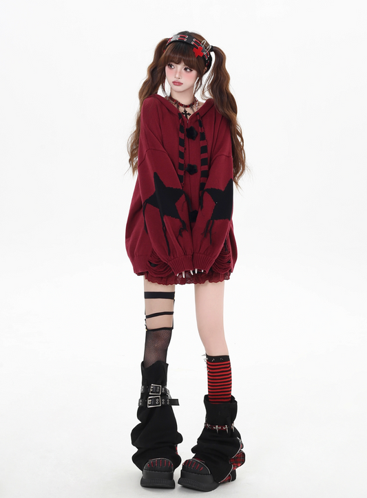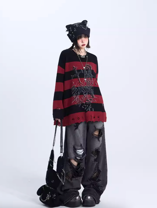 オフショルオーバーダメージニット NW1276