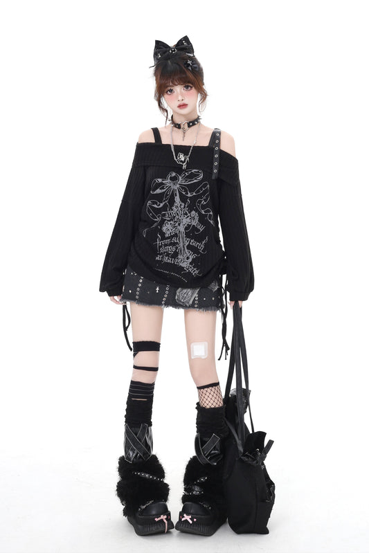 オフショルクロストップス