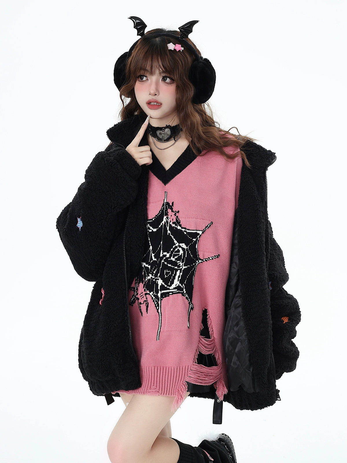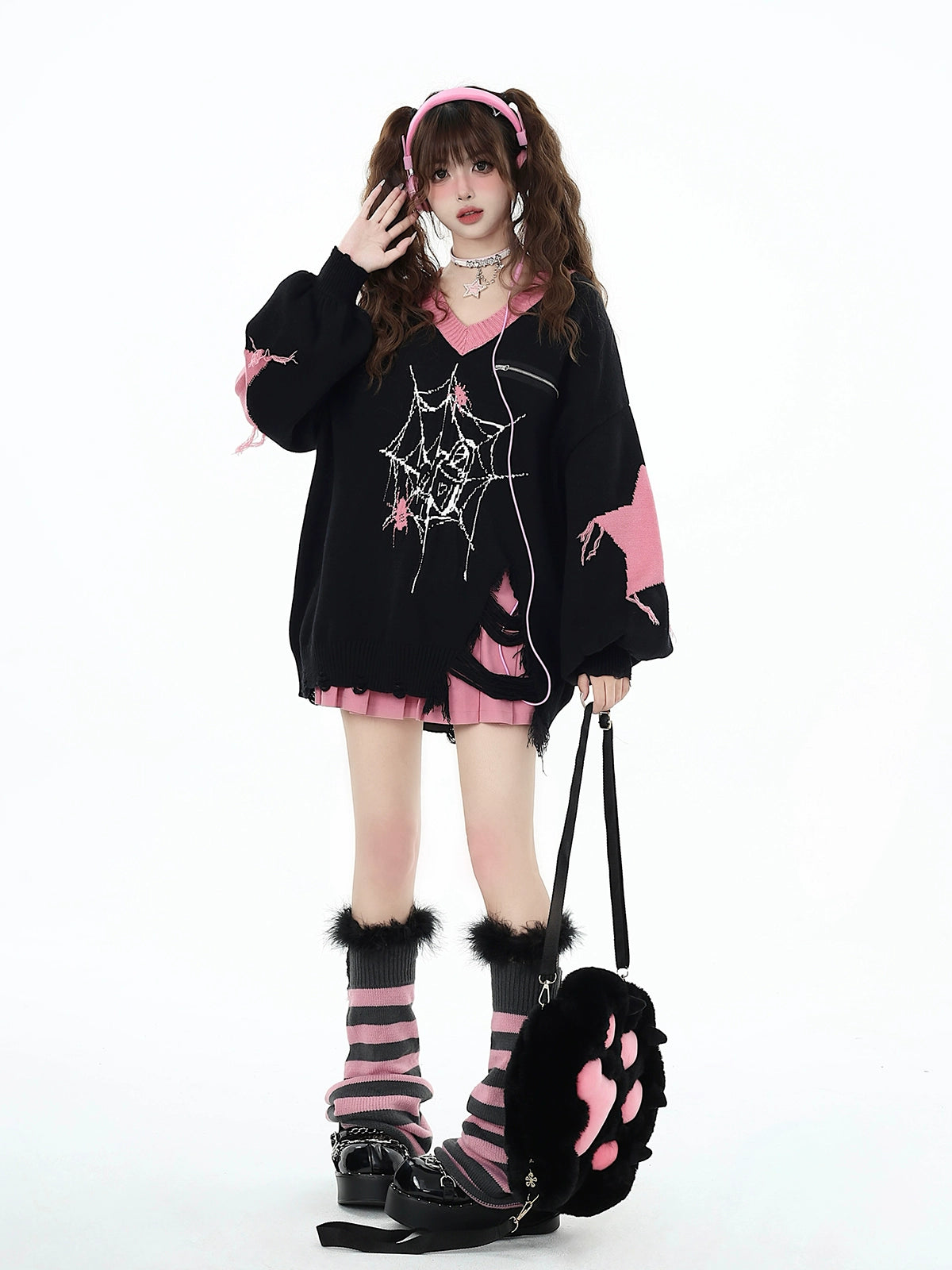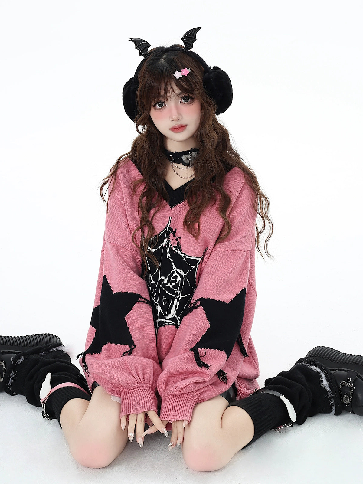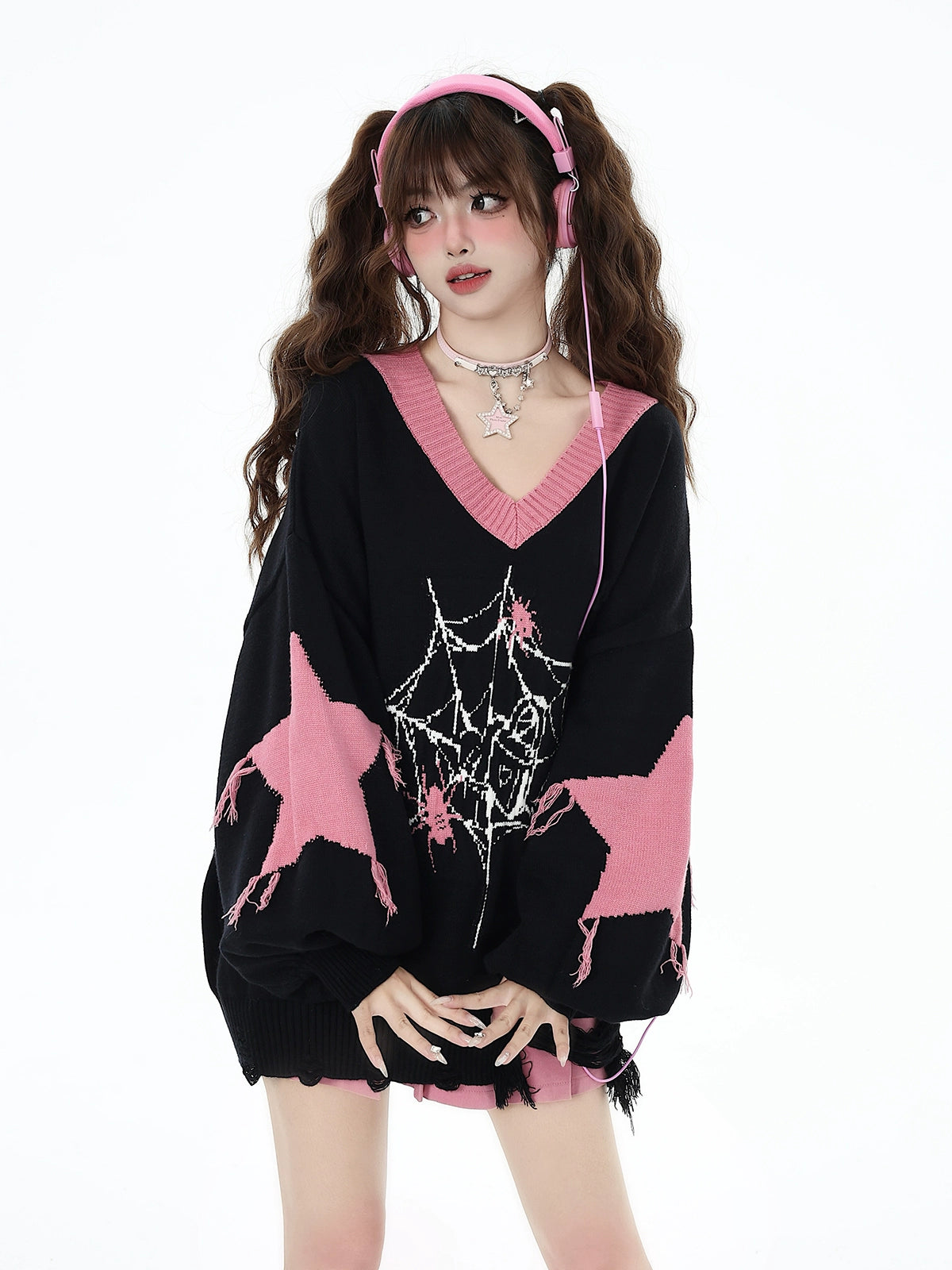サブカルスパイダーピンクニット NW1283