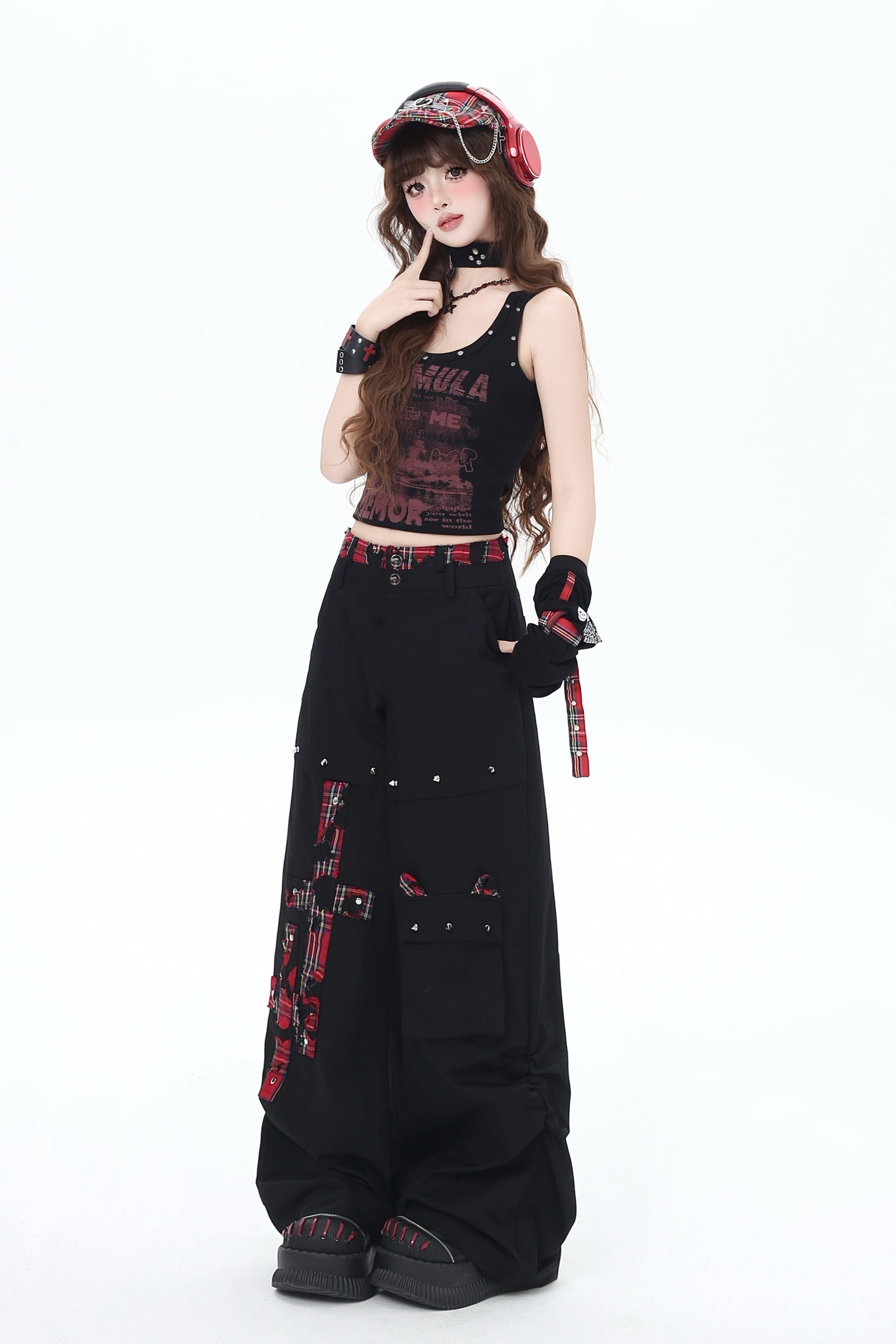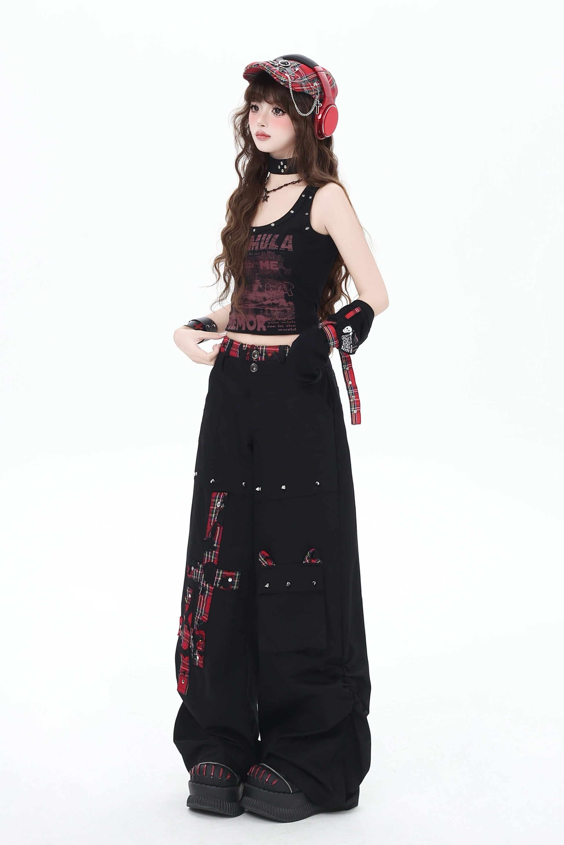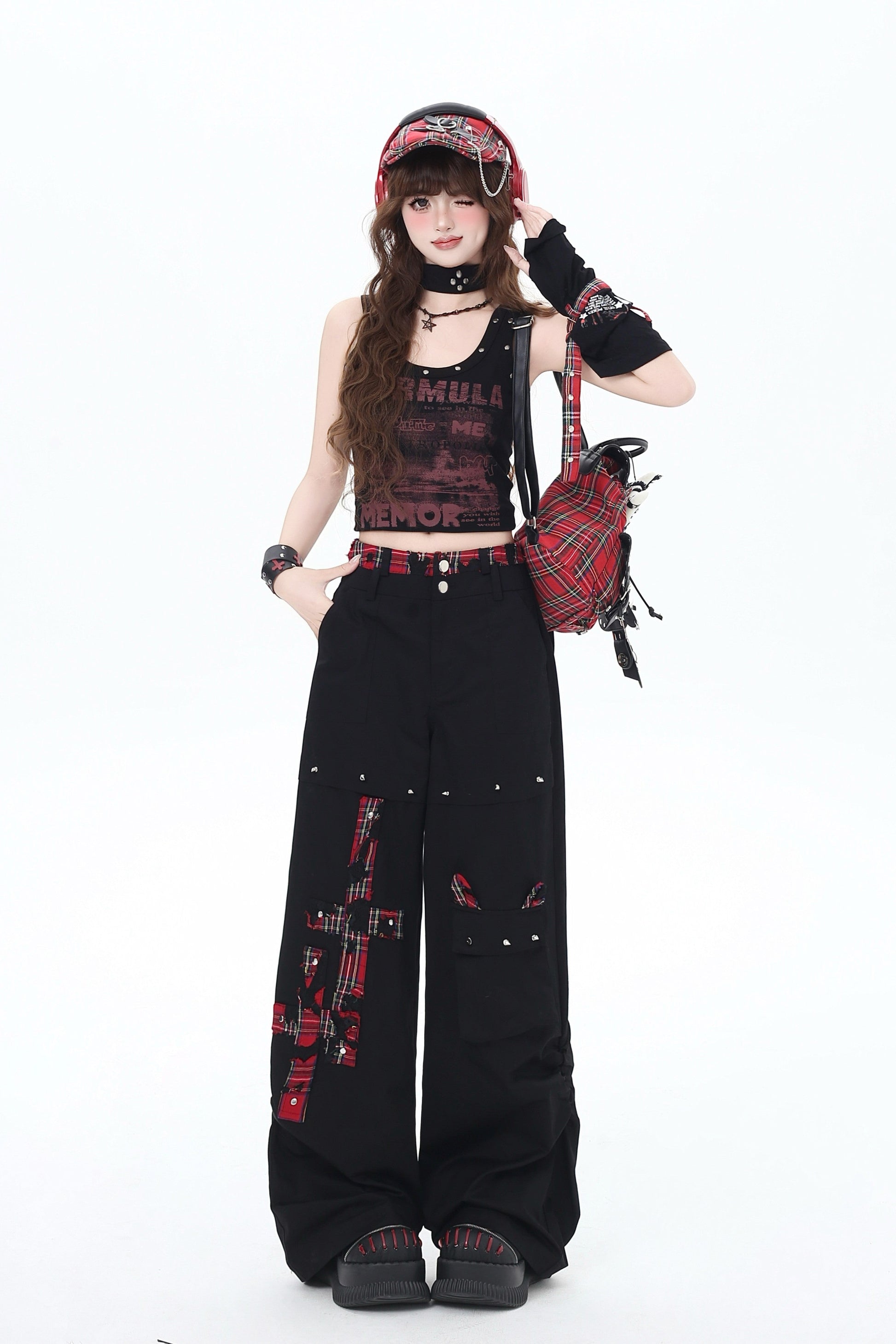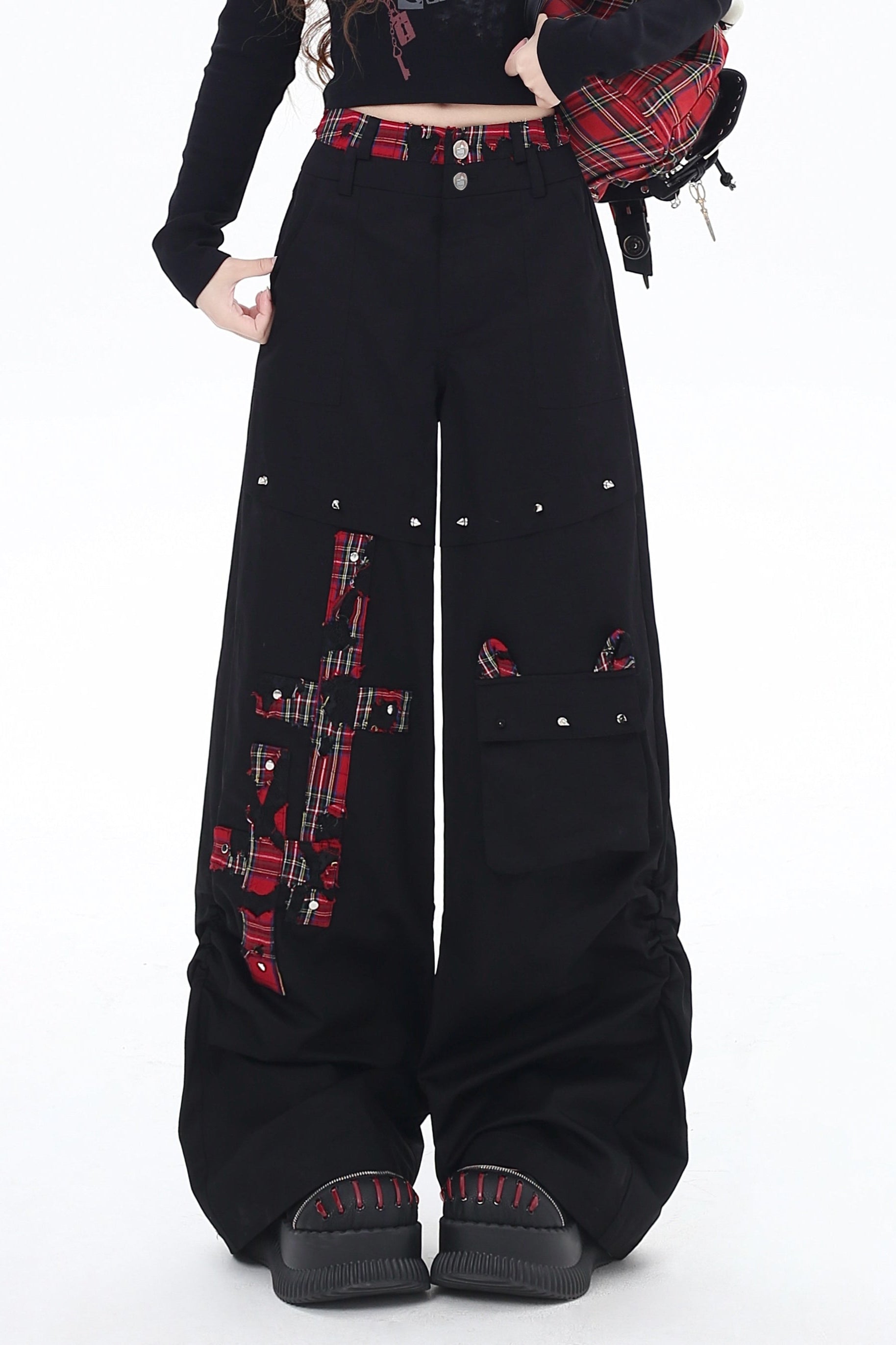 クロスレッドチェックパンツ