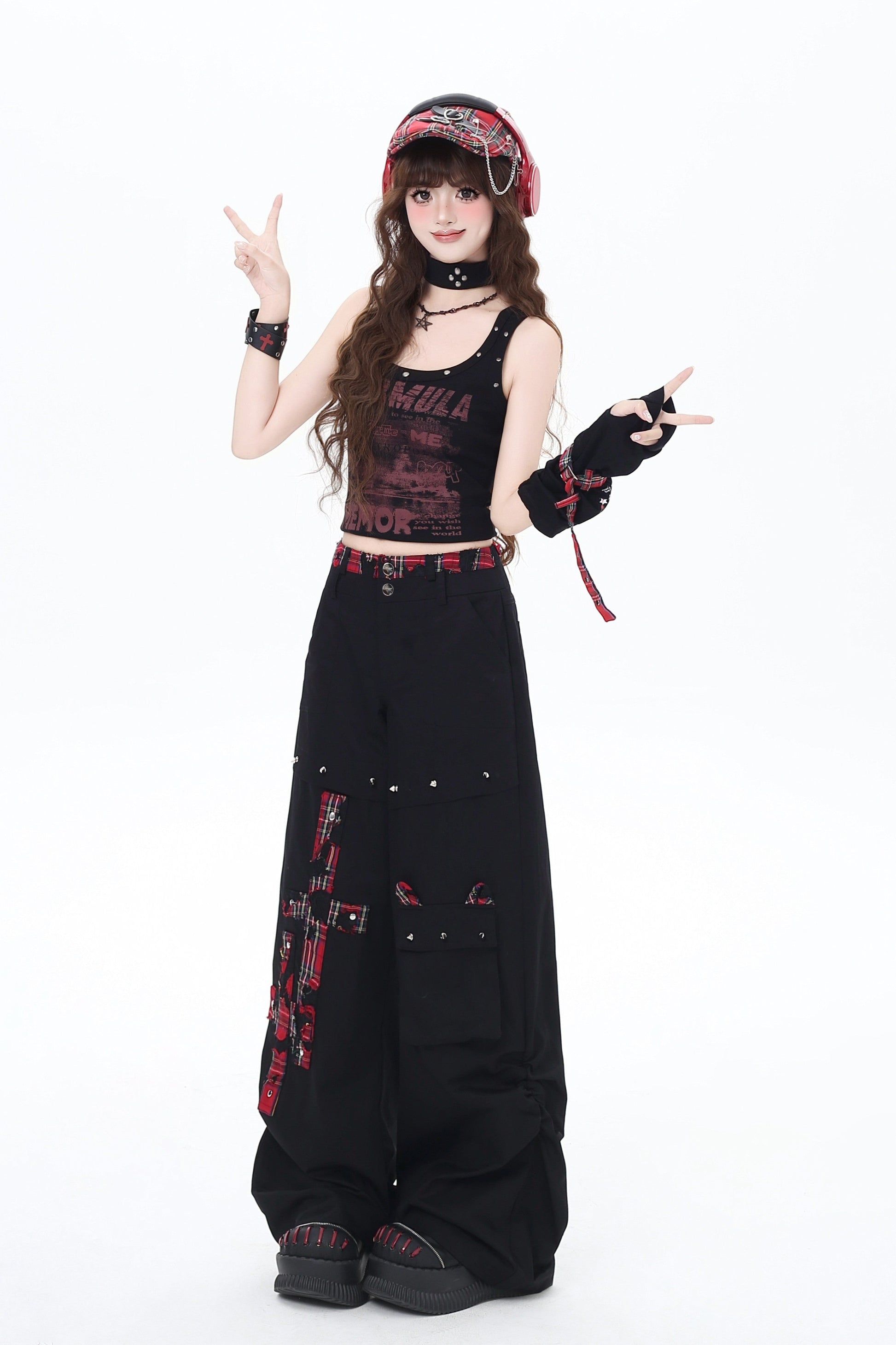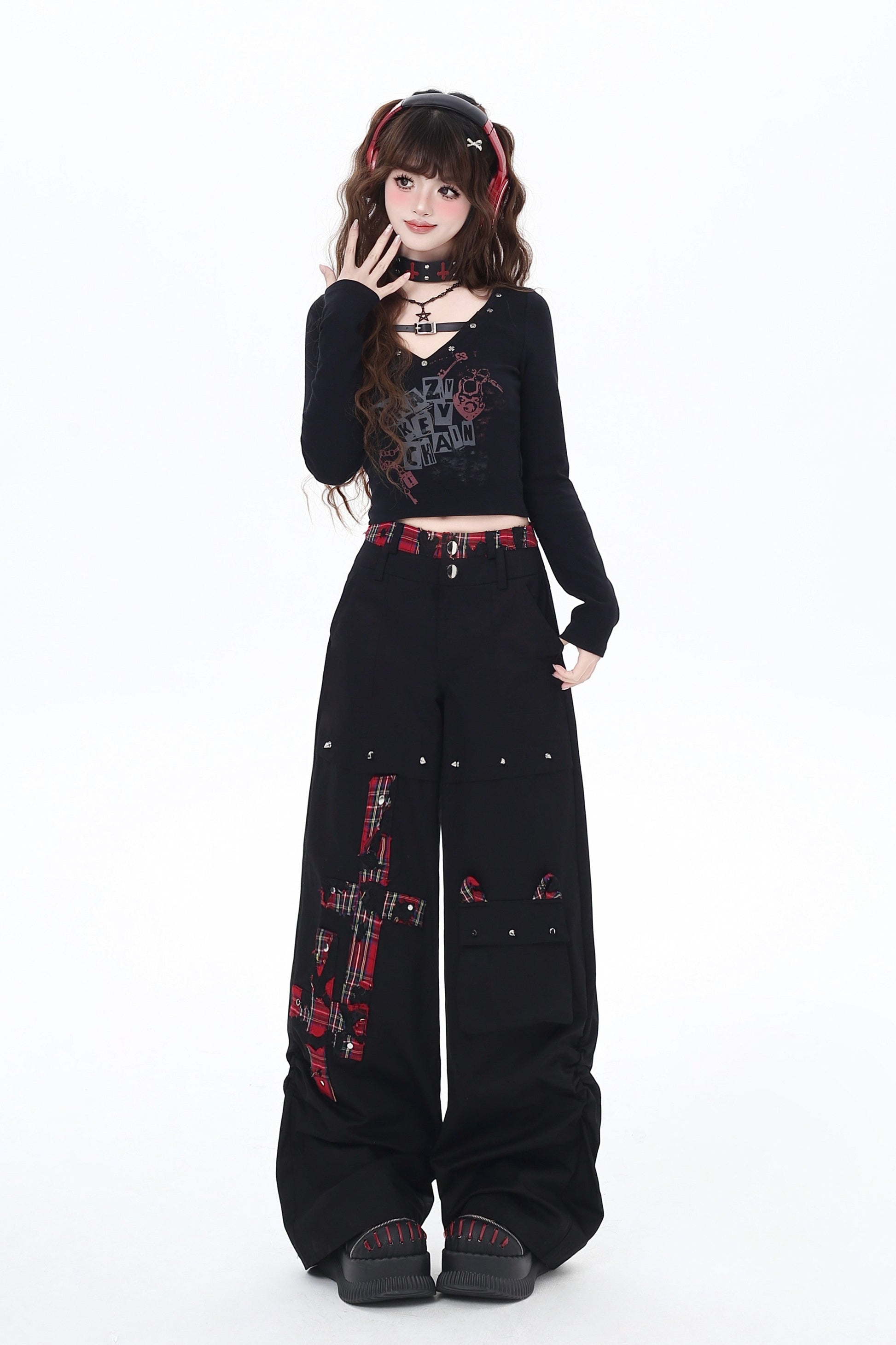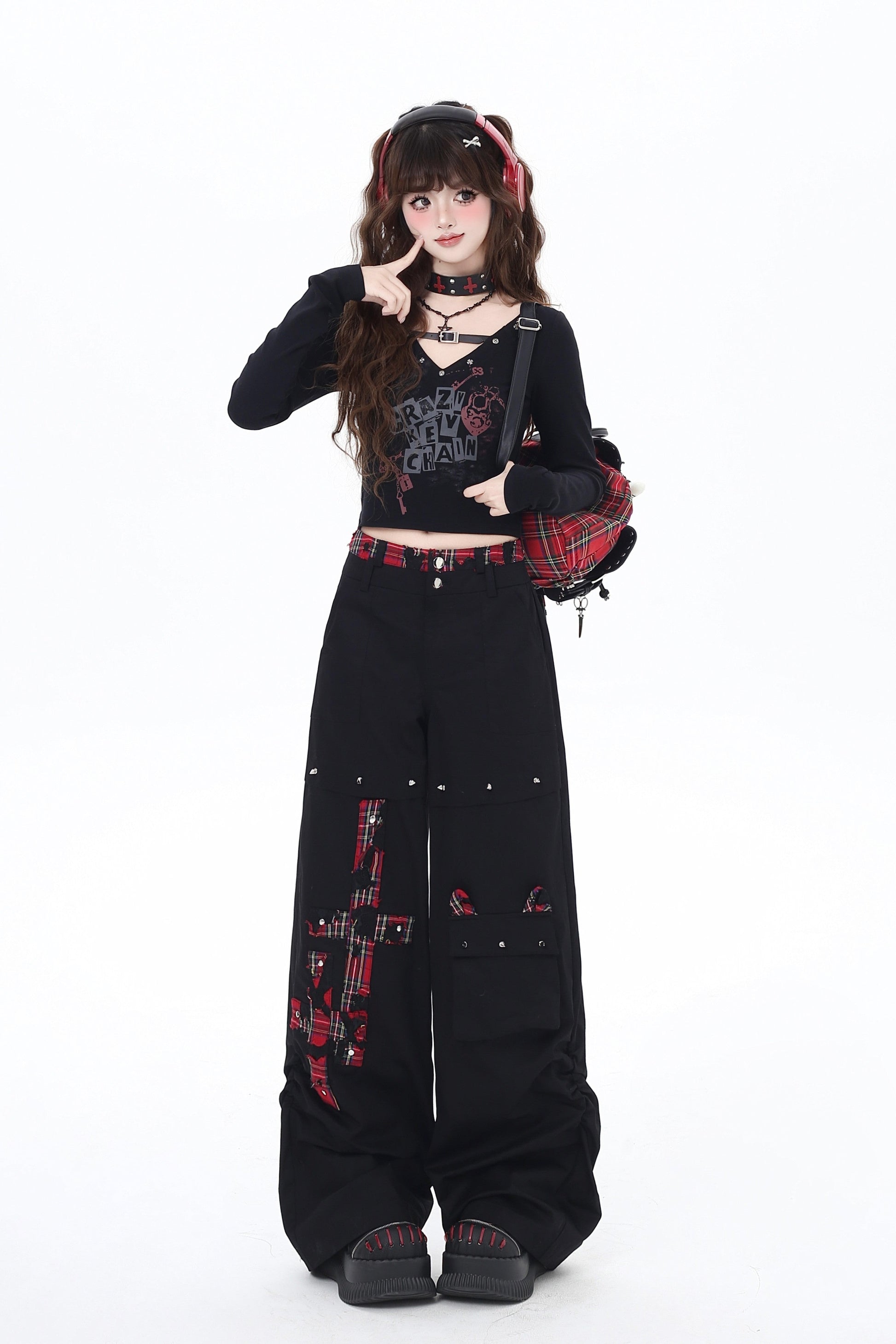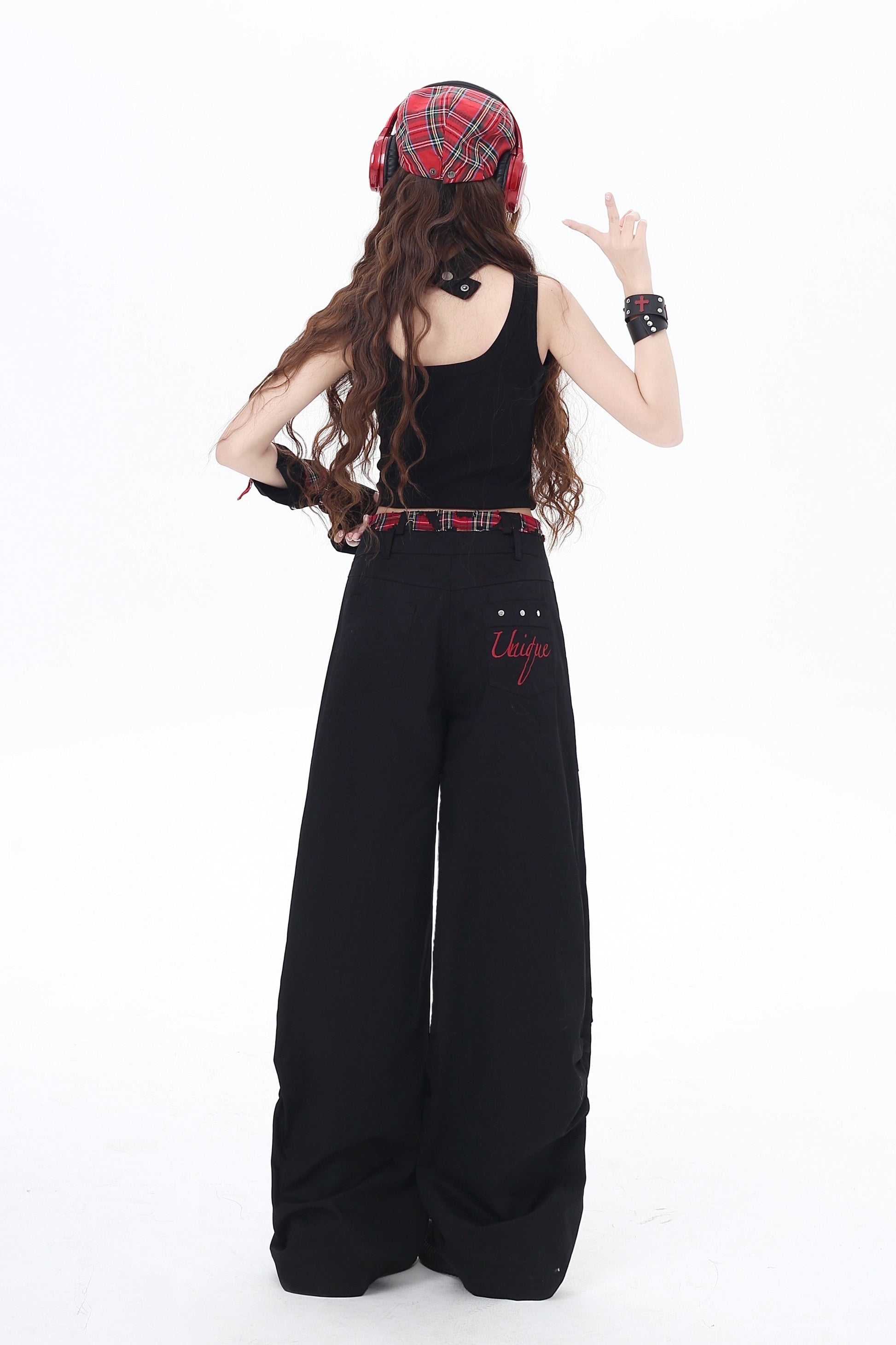 クロスレッドチェックパンツ