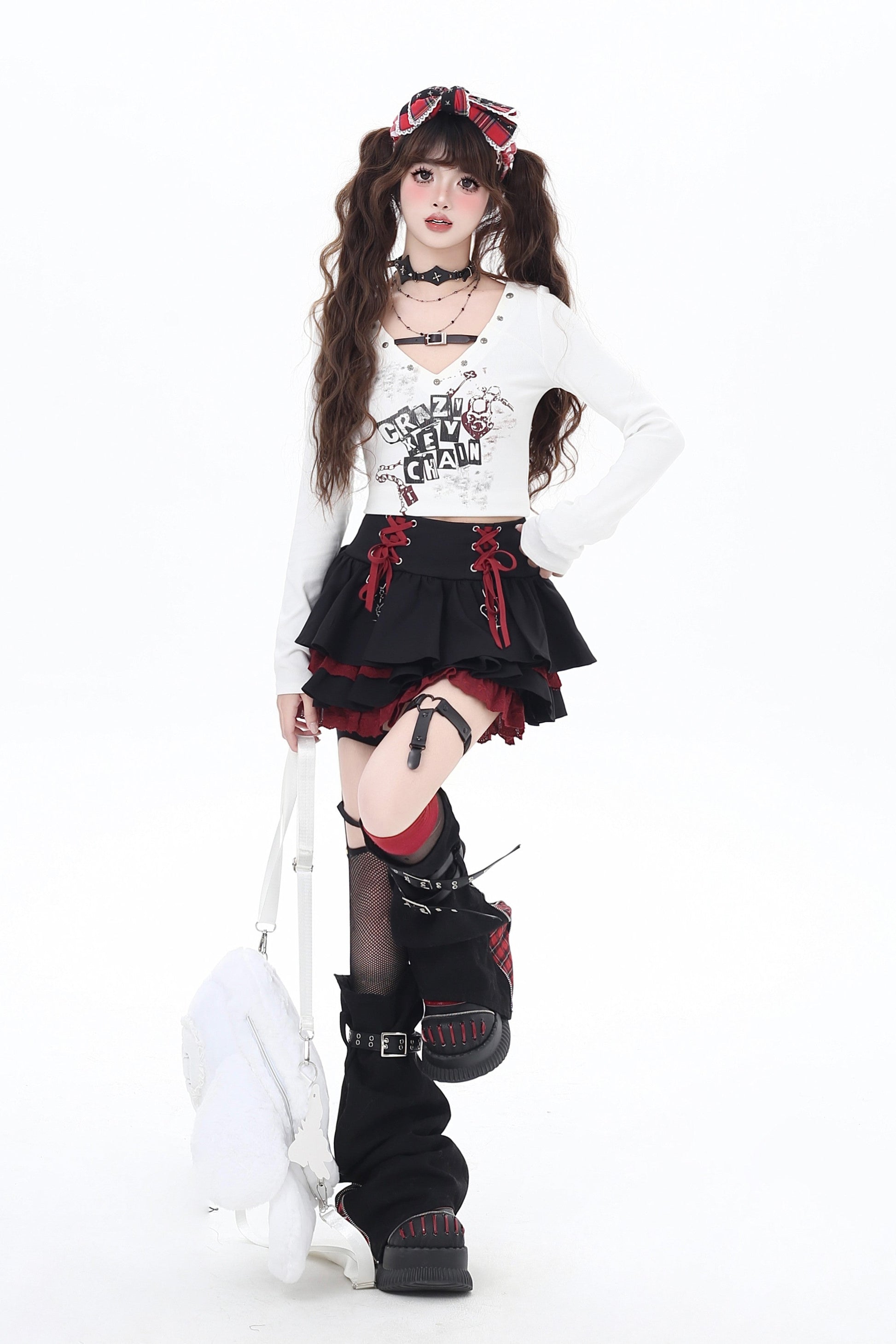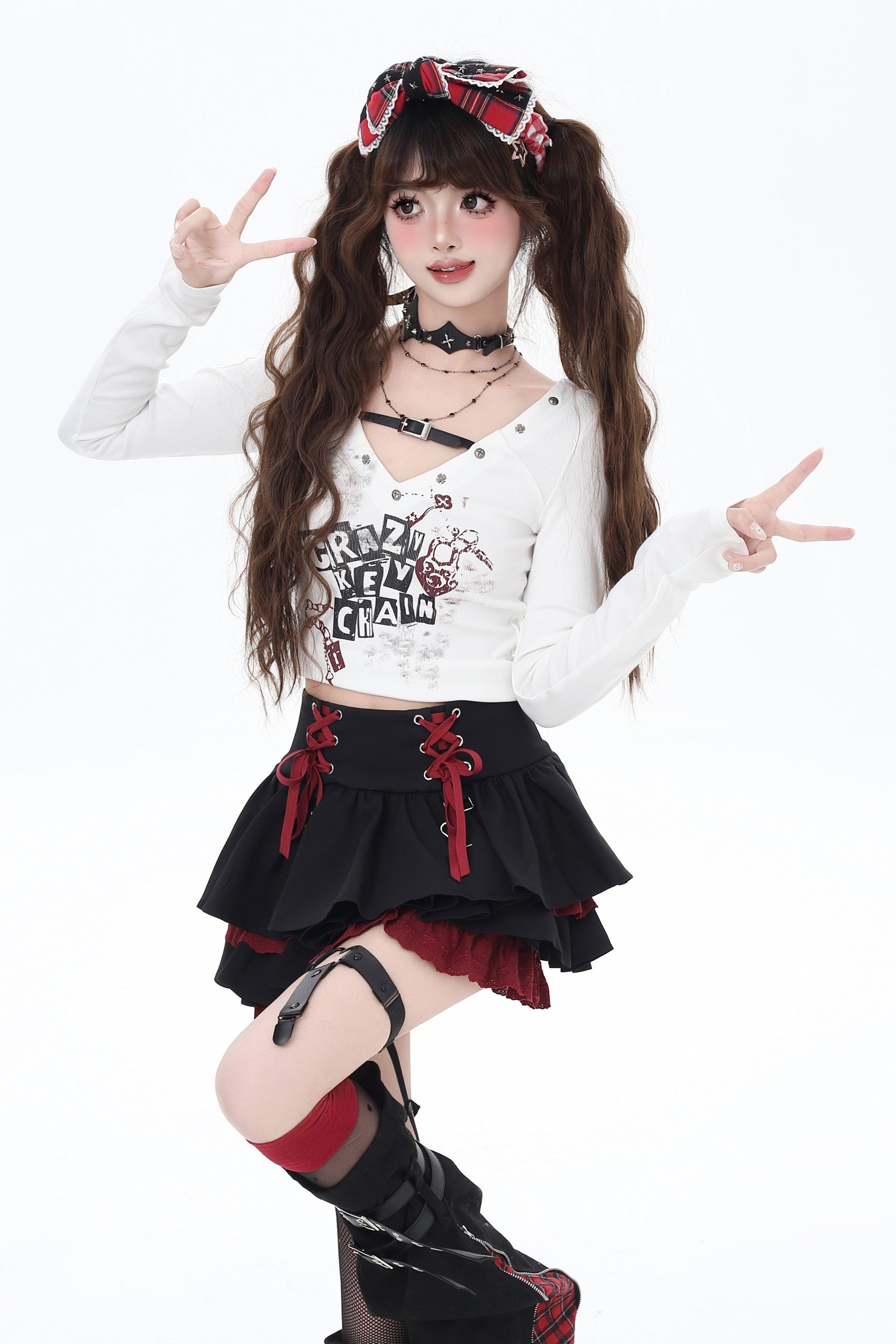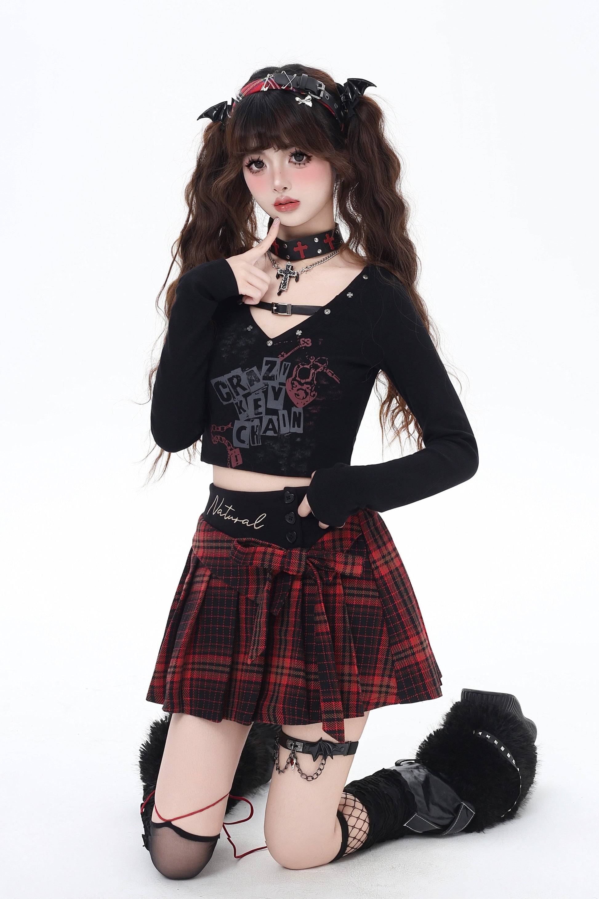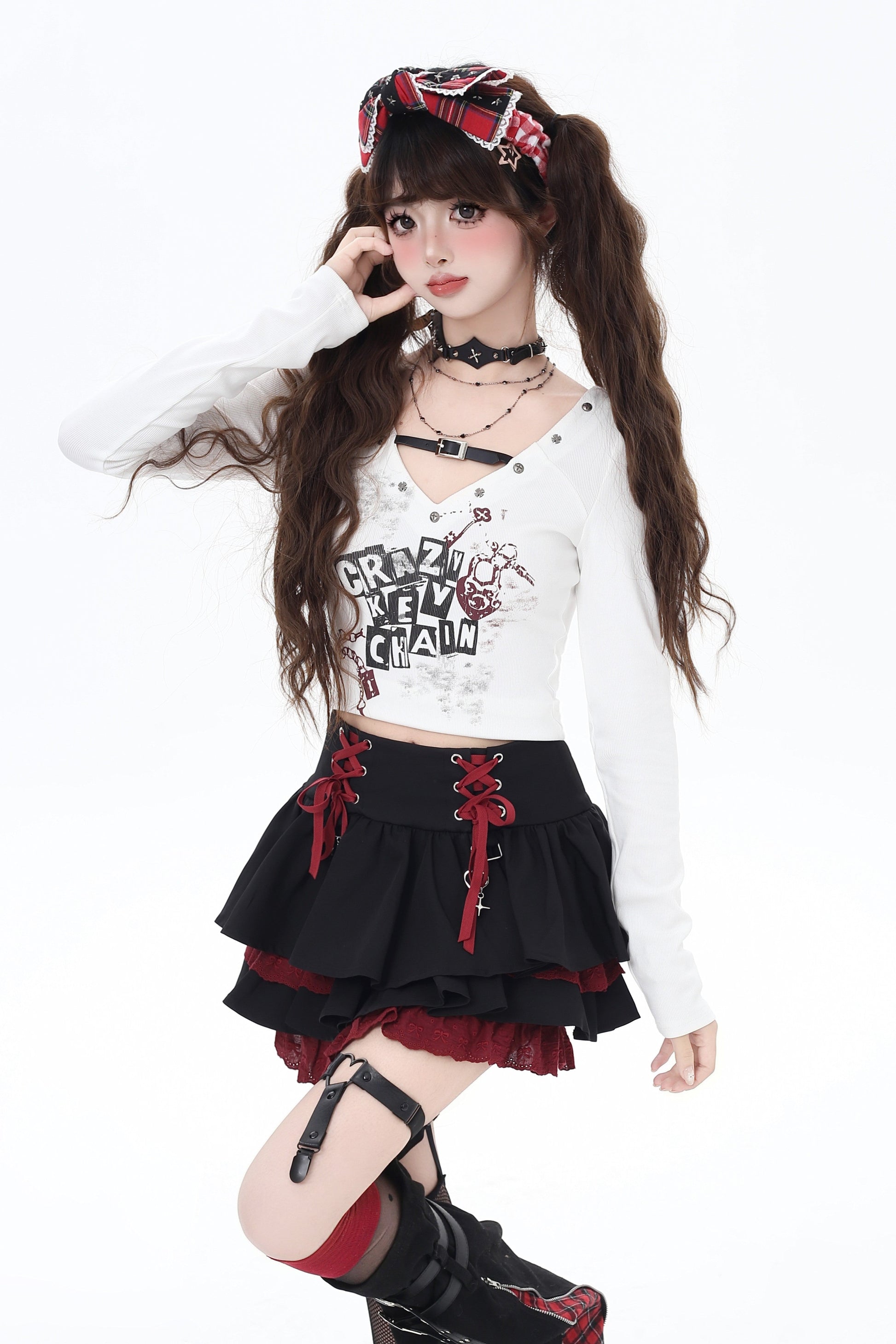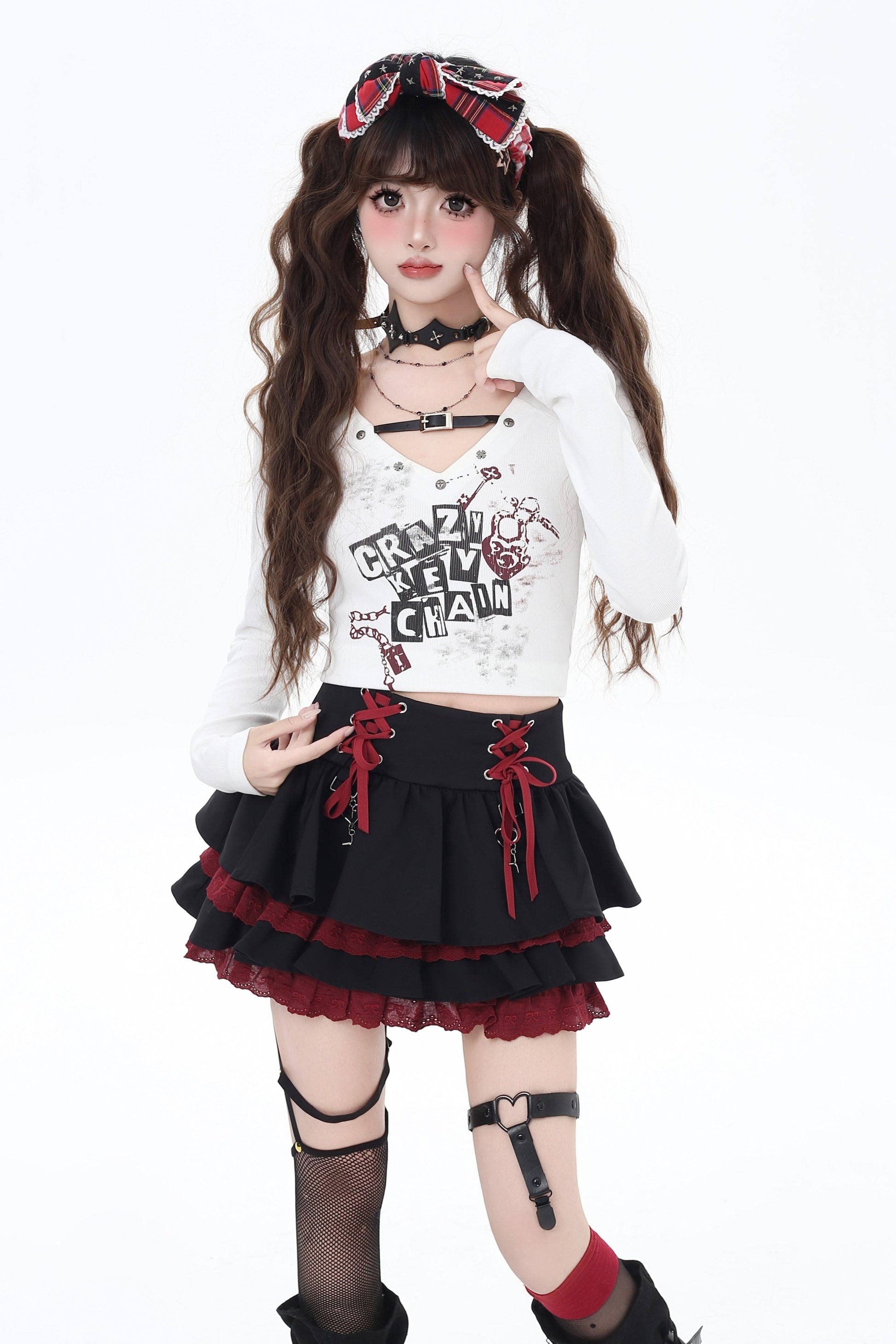 Vネッククロップドトップス